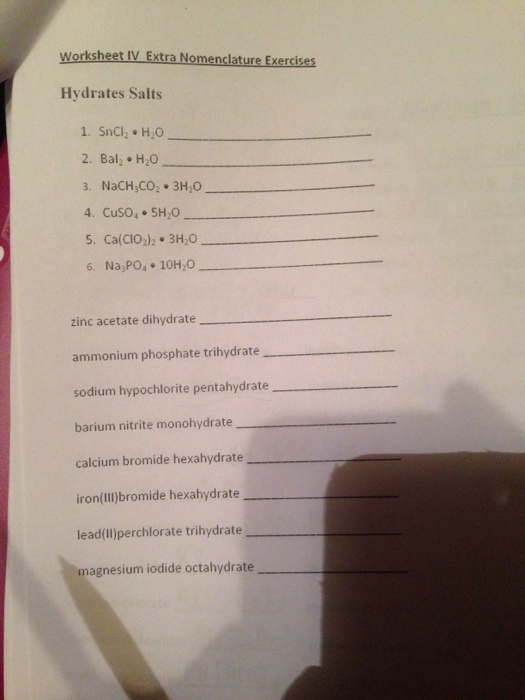 Hydrates Worksheet Answers : Hydrate Worksheet Hydrate Worksheet Name The Following Hydrates Cacl2 8 H2o Feso4 6 H2o Lioh H2o Pbcl2 3 H2o Li2cro 4 5 H2o Na2so4 10 H2o Write The Course Hero : We have a word search maker, an abc order worksheet creator, math generators, and more.. Studyres contains millions of educational documents, questions and answers, notes about the 6h2o 5. Past simple (regular & irregular verbs). 8h2o name the following hydrates: As you work, click create to generate a preview of your tracing worksheet to the right. For exercises, you can reveal the answers first (submit worksheet) and print the.